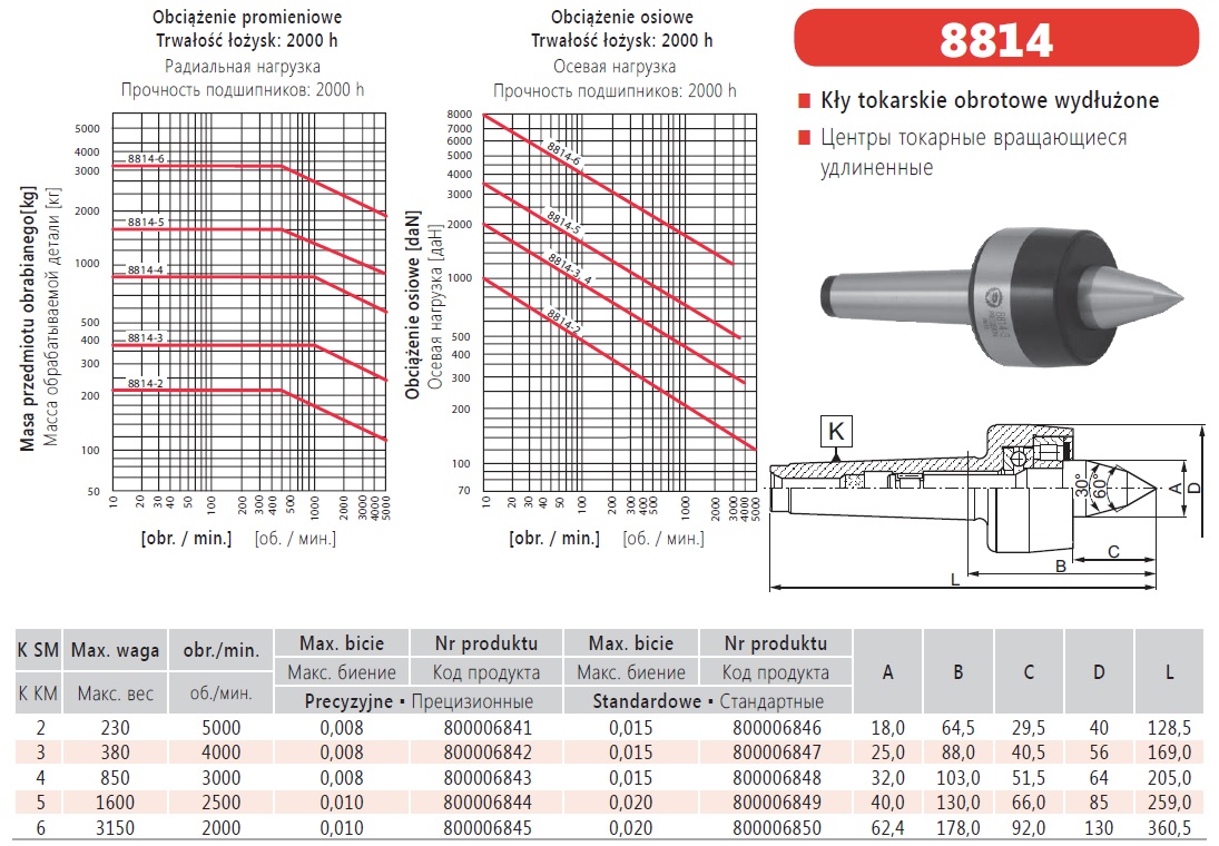 Вращающийся центр прецизионный Bison 8814-2 КМ2 предназначен для поддержки и центрирования заготовок при токарной и другой металлообрабатывающей обработке. Устройство обеспечивает стабильную осевую опору детали при работе между центрами, что важно для точности обработки.