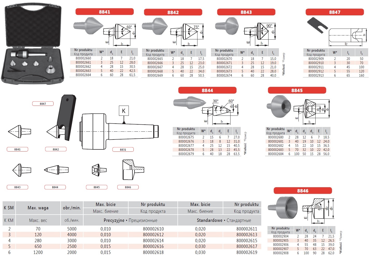 Вращающийся центр со сменными рабочими конусами (6 шт.) Bison 8831-2/II KPL М2 кл. 2 предназначен для поддержки и центрирования заготовок при токарной обработке и других операциях металлообработки с возможностью установки сменных рабочих конусов различного диаметра. Комплект из шести рабочих конусов обеспечивает универсальность применения и адаптацию под разные технологические задачи.